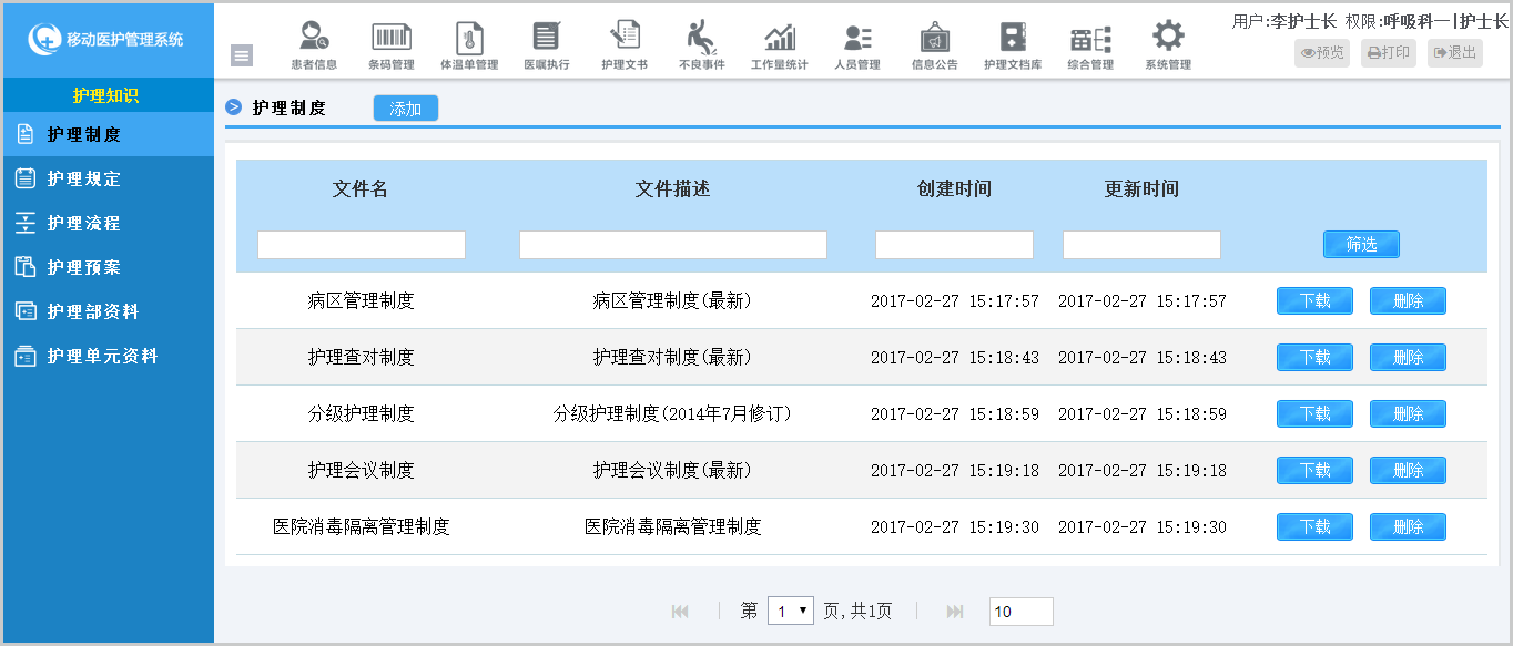 針對(duì)醫(yī)院等級(jí)評(píng)審和日常護(hù)理管理需要,系統(tǒng)內(nèi)置6大分類,可以自由上傳、完善文檔,并且可以實(shí)現(xiàn)分科室協(xié)同編輯、查看,簡(jiǎn)化護(hù)理文檔管理工作量。