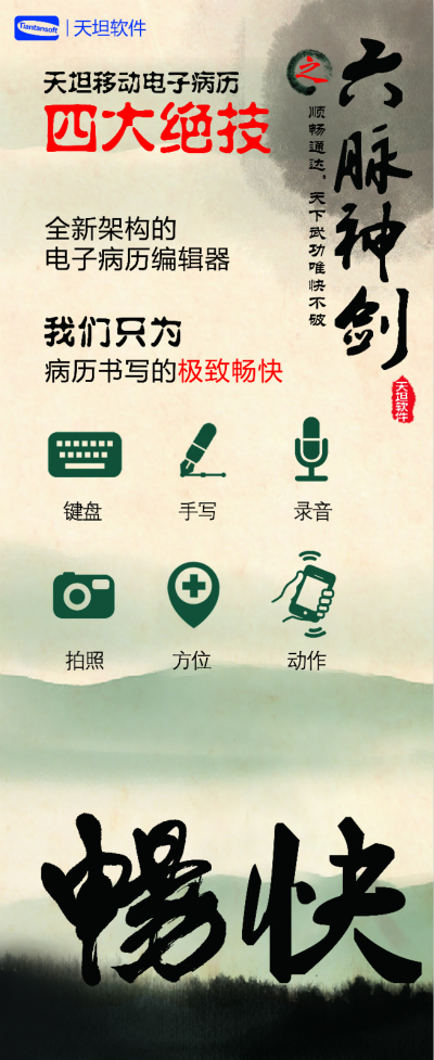 在全球范圍,向移動互聯(lián)網(wǎng)推進的浪潮已經(jīng)勢不可擋, 醫(yī)療行業(yè)如其他行業(yè)一樣,要想更好地發(fā)展,必須融入這個浪潮。天坦軟件通過多年的努力,打造出“天坦移動電子病歷”,加強了醫(yī)院管理效率和力度,避免醫(yī)療差錯和事故,改善醫(yī)患關(guān)系,減少醫(yī)患矛盾,提高醫(yī)護人員的工作效率,提高醫(yī)療服務(wù)響應(yīng)能力,隨時隨地為患者服務(wù)。