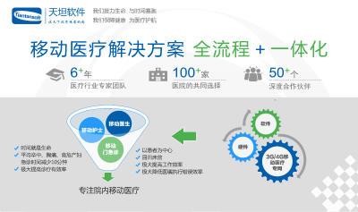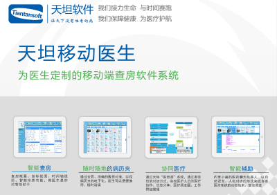 除了卒中綠色通道之外,天坦軟件在大會上還展出了移動醫(yī)護產(chǎn)品,主要涉及天坦移動醫(yī)生和天坦移動護士。天坦移動醫(yī)生是專門為醫(yī)生定制的移動查房系統(tǒng),具有智能查房,協(xié)同醫(yī)療、智能輔助等特點,是隨時隨地的病歷夾;天坦移動護士是專門為護士定制的移動護理系統(tǒng),支持全程條碼信息核對,臨床信息移動化錄入,隨時隨地信息查詢以及護理管理等。
