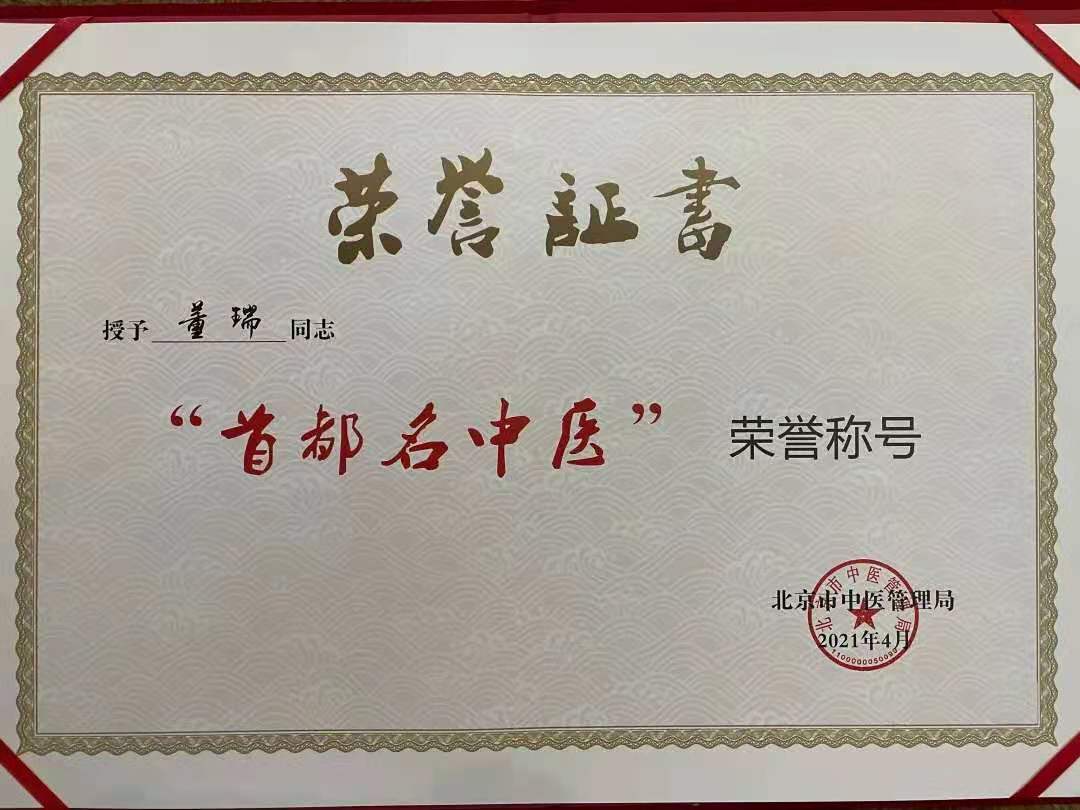 傳承、守正、創(chuàng)新、大醫(yī)精誠,是對(duì)董瑞三十五年中醫(yī)藥生涯的真實(shí)寫照,榮獲首屆“首都名中醫(yī)”榮譽(yù)稱號(hào),是對(duì)他從醫(yī)以來一直致力于中醫(yī)文化傳承、堅(jiān)守臨床一線的肯定,也是他對(duì)“敬佑生命、救死扶傷、甘于奉獻(xiàn)、大愛無疆”的職業(yè)精神的最好詮釋。