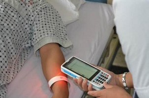 二維碼標(biāo)識技術(shù)與移動護理的應(yīng)用相結(jié)合,實現(xiàn)了掃描患者腕帶的功能。護理人員使用PDA掃描患者腕帶可以準(zhǔn)確地查看患者的基本信息、檢查及治療情況、還可以快速的完成出入院、手術(shù)、急救等不同的治療場景。通過腕帶掃描提高了護理工作效率和信息準(zhǔn)確性,提高了醫(yī)療質(zhì)量,緩解了醫(yī)患關(guān)系。