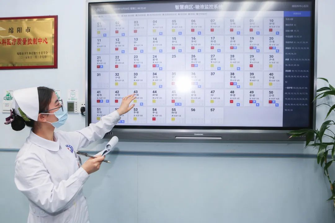 走進市中心醫(yī)院心胸外科護士站,呈現(xiàn)在眼前的是一塊超大高清屏幕,“這是我們的智慧病房,通過管理中心與護士站、HIS系統(tǒng)對接,實現(xiàn)病區(qū)信息互通,患者信息一屏盡覽,”心胸外科護士長李金學說道,“能幫助醫(yī)護人員更為精確地了解病區(qū)患者輸液情況等動態(tài)、關(guān)注重點病人,真正做到心中有數(shù)。”