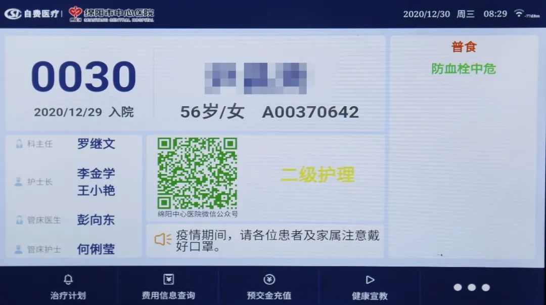 床旁的這塊屏幕作為一套連接護士站、走廊和病房的系統(tǒng),實現(xiàn)跨空間的信息互通。不僅有效提升了醫(yī)、護、患三者溝通時效,還為患者提供了更多便捷和人性化的服務(wù)。患者輸入密碼可以隨時隨地查詢費用明細,并且還可以床旁掃碼繳費,減少了患者往返排隊時間。