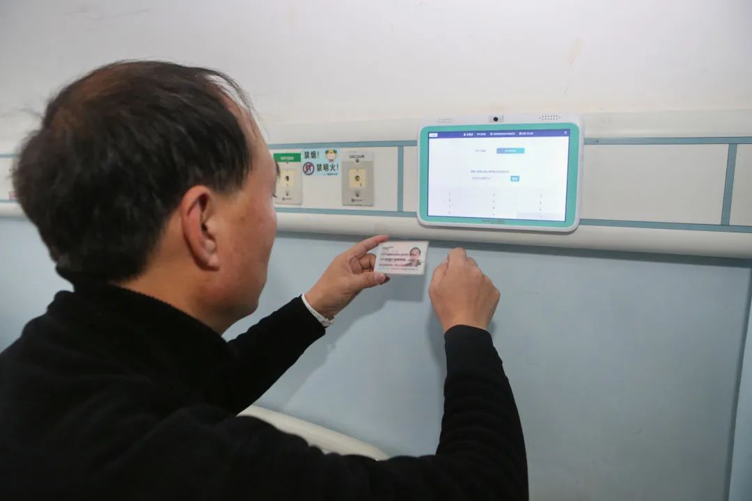 在市中心醫(yī)院心胸外科病房,剛?cè)朐旱牧质迨逭龑χ〈泊差^的電子屏幕跟著醫(yī)護人員一起做呼吸訓(xùn)練操……林叔叔因肺部結(jié)節(jié)入院準備手術(shù),術(shù)前術(shù)后的呼吸訓(xùn)練能幫助他快速康復(fù),“以前我們會把患者集中組織起來教他們做呼吸訓(xùn)練操,但是可能學一次就忘了,現(xiàn)在我們把這些健教視頻放在患者床頭的電子屏上,患者可隨時可以點進去跟著練習,”護士長李金學介紹,“除此之外,林叔叔還可以通過這塊屏幕實現(xiàn)診療計劃查詢、床旁掃碼繳費、費用明細查詢……以后我們還想利用這套信息系統(tǒng)完成床旁結(jié)算,患者從住院到出院,在病房就能一站式完成。”